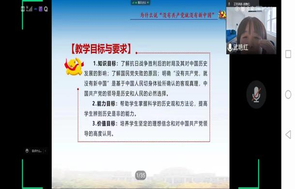 5月3日下午,太原科技大学、教育部思政课教学展示一等奖获得者武艳红副教授走进《中国近现代史纲要》课堂,为我校100多名大一学生讲授《没有共产党就没有新中国》。武艳红副教授的授课以“没有共产党就没有新中国”的歌曲导入,从政党力量、民心向背、统一战线三方面展开,通过生动、深入、具体的横向与纵向比较,为学生讲清楚了“中国共产党为什么能建立新中国”的问题,激发了学生心理与情感上的强烈共鸣。