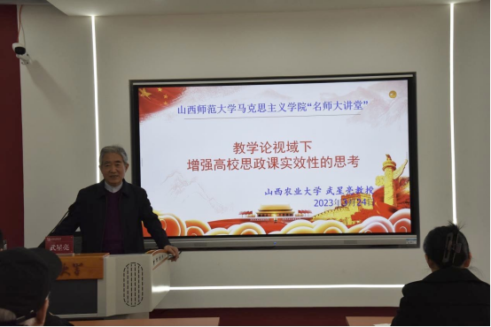 3月24日下午,全国优秀教师、首届全国高等学校优秀思政课教师一等奖教金获得者、山西农业大学武星亮教授应邀为今年会全体思政课教师作报告,报告会在南区8号楼418会议室举行,由副院长赵改萍主持,全体思政课教师聆听了报告。