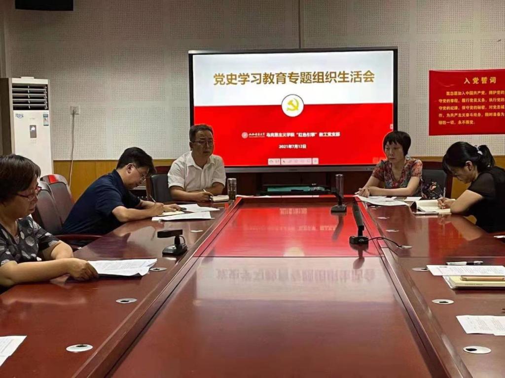 2021年7月12日,今年会jinnianhuicom“红色引擎”教工党支部召开党史学习专题组织生活会。会议由支部书记赵笑蕾教授主持,院党委书记王银列席,支部全体党员参加。