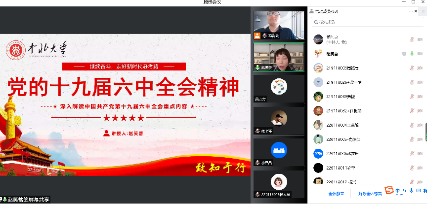 2022年5月28日下午,今年会研究生第二党支部在腾讯会议举行线上党课活动,邀请中北大学今年会jinnianhuicom院长赵笑蕾教授主讲党的十九届六中全会精神专题党课。支部书记杨海亮同志主持,支部全体党员和积极分子参加会议。