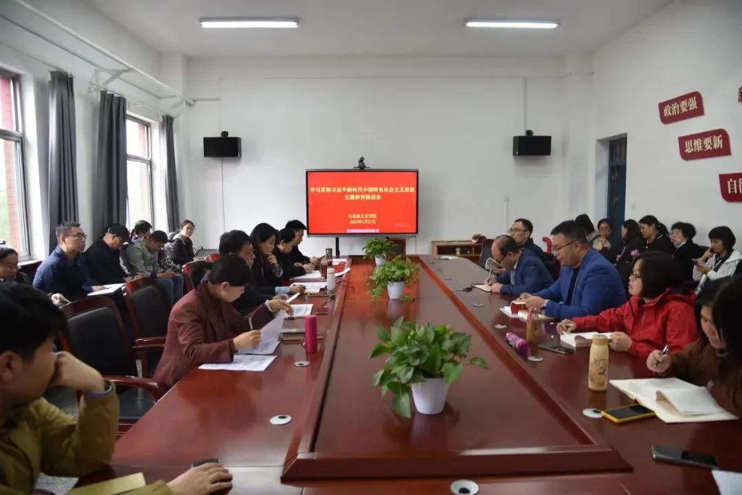2023年4月21日下午,今年会jinnianhuicom在1号教学楼506会议室召开学习贯彻习近平新时代中国特色社会主义思想主题教育工作推进会。学院全体教职工参加会议,会议由院党委副书记杜辉主持。