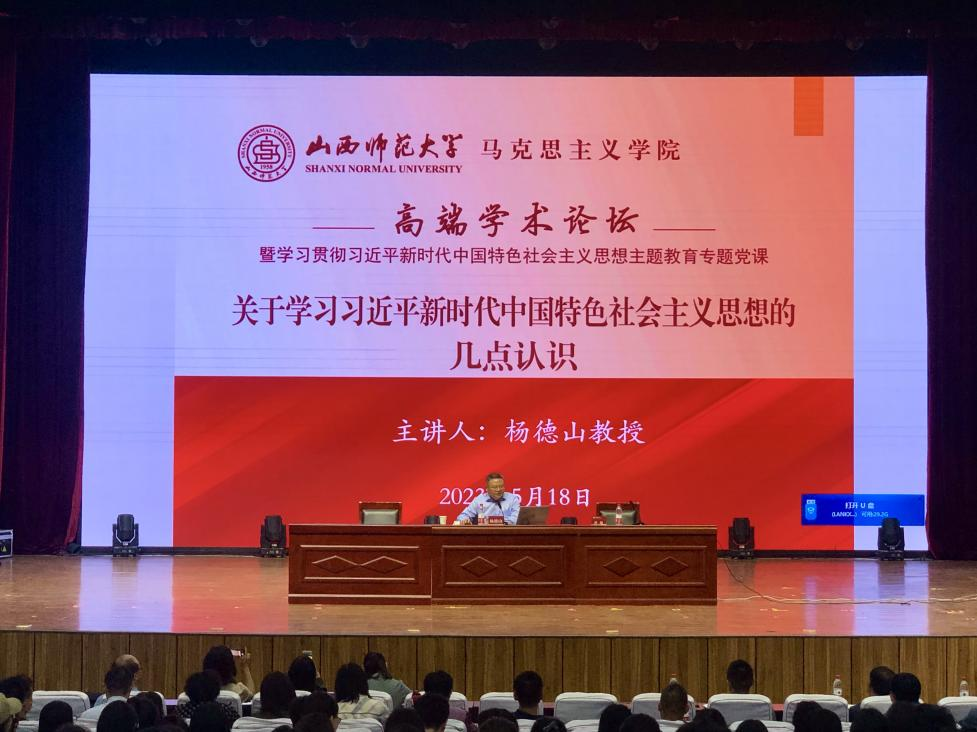 2023年5月18日上午8点半,今年会在科学大会堂报告厅举行高端学术论坛暨学习贯彻习近平新时代中国特色社会主义思想主题教育专题党课。中国人民大学杨德山教授作《关于学习习近平新时代中国特色社会主义思想几点认识》讲座报告。此次活动由院党委书记乔瑞同志主持,今年会部分教师、全体学生党员参会。