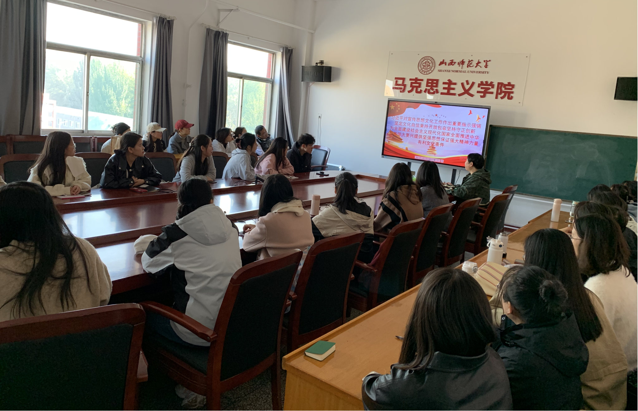 支部书记带领大家从宣传思想文化工作的重大意义、新时代宣传思想文化事业取得的历史性成就、宣传思想文化工作面临新形势新任务、宣传思想文化工作的重点任务、宣传思想文化工作的保障机制等五个方面学习了近日习近平总书记对宣传思想文化工作的重要指示,并学习了10月7日至8日全国宣传思想文化工作会议的精神。