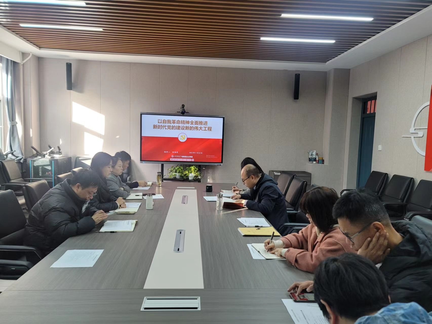 会上,副院长(挂职)杨海亮专题领学了《论党的自我革命》一书,结合“全面从严治党探索出依靠党的自我革命跳出历史周期率的成功路径”这一篇章,对“六个坚持”的深刻内涵进行了详细解读。