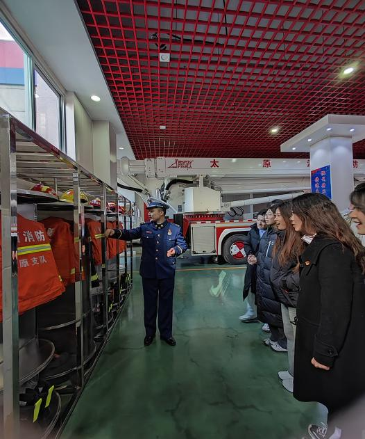 在太原市高新大队学府消防站,大家沿着步道参观了消防文化展示、科普教育和互动体验等区域。活动现场秦班长用通俗易懂的语言向大家讲解了日常生活中的消防安全注意事项,包括定期排查家庭火灾隐患的必要性、用电用气注意事项、私拉电线的危害、基本火灾逃生技能等,同学们都表示收获满满。