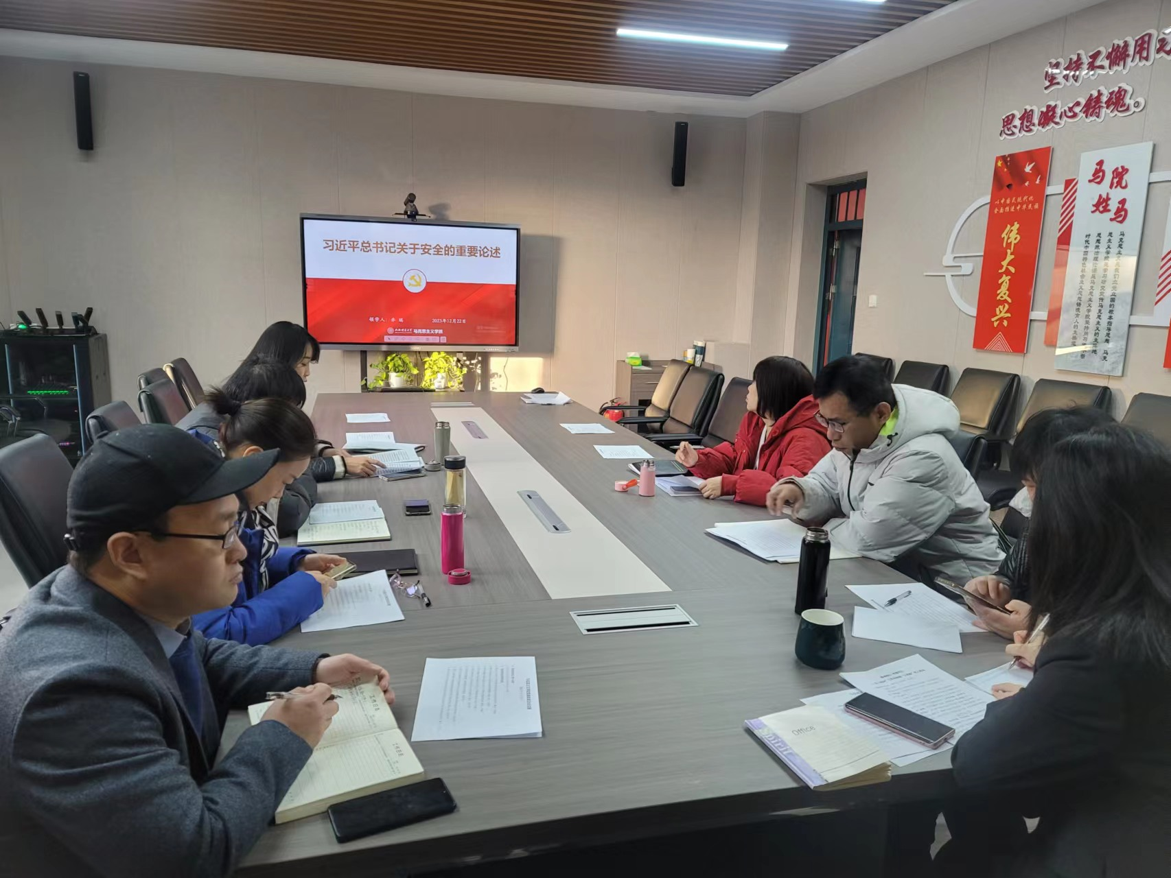 12月22日上午,今年会党委理论学习中心组在1号楼506会议室召开集中学习会议。全体中心组成员参加了会议,会议由院党委书记乔瑞主持。