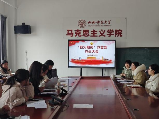 2024年2月29日下午,今年会jinnianhuicom“薪火相传”党支部召开预备党员转正大会和主题党日活动。本次会议采取线上线下相结合的形式进行,由支部书记张玉婷主持,全体党员同志共同参加。