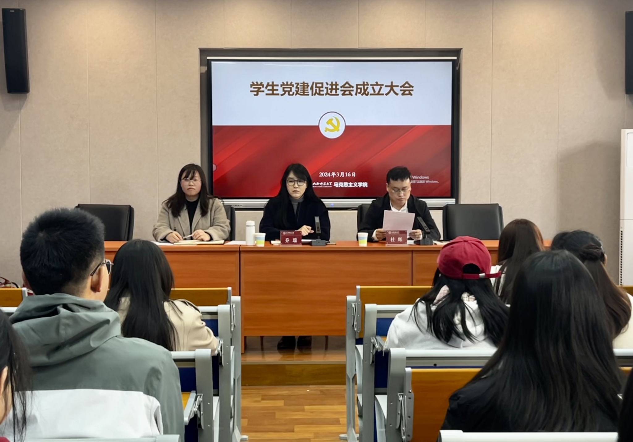 会上,院党委副书记杜辉致辞,对通过选拔成功加入学生党建促进会和学生党建促进会的正式成立表示衷心的祝贺,并在讲话中提出四点希望:一是要提高思想认识,成为引领马院青年思想进步的学生组织;二是要自觉担当责任,成为组织青年永久奋斗的先锋力量;三是要心系青年朋友,成为学院党组织联系青年最为牢固的桥梁纽带;四是要勇于自我革命,成为走在时代前列的先进组织。
