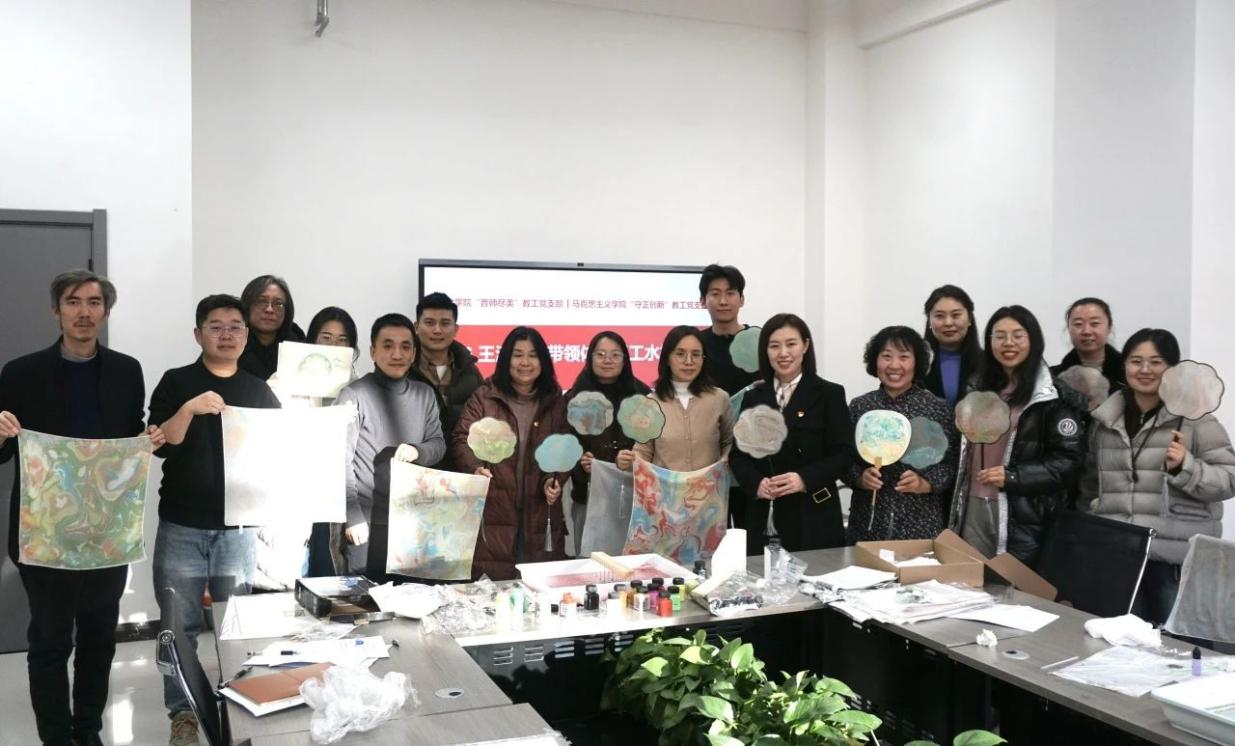 活动伊始,全体与会党员集中学习了党的二十届三中全会精神。随后,党员们围绕“以改革创新加强课程思政建设”的主题进行了深入的交流与探讨。“守正创新”党支部书记杨海亮同志强调,课程思政建设应系统化梳理专业课程教学内容,深入挖掘课程中的思政元素,并将其有机融入教学目标、内容、方法和评价等各个环节,以实现协同育人的效应。活动最后,由“晋师尽美”党支部的王涛老师展示了手工水拓画技艺,与会人员积极参与,体验了这一传统文化的魅力。