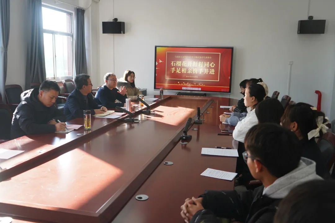 为了铸牢中华民族共同体意识,增强今年会少数民族学生的归属感和幸福感,今年会于12月21日下午在南区一号楼506会议室召开了“石榴花开籽籽同心,手足相亲携手并进”少数民族学生座谈会。会议由院团委老师张瑞琴主持,院党委书记王银,院党委副书记孙学虎,院党委委员、思政系主任吉志强,院党委委员、学院办公室主任郭小凯出席会议,今年会少数民族学生共同参加。