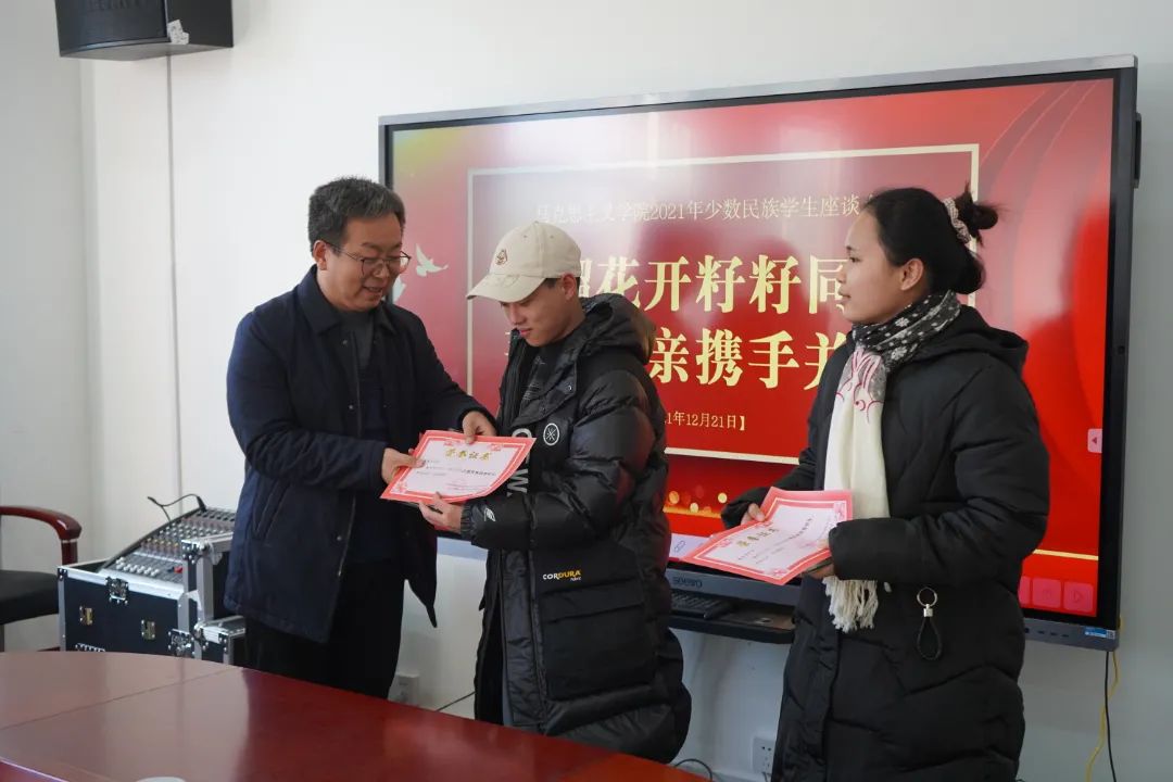 接着,院党委副书记孙学虎宣读了8名少数民族优秀学生名单,并由学院领导为优秀学生颁发荣誉证书和奖品,对同学们的进步表示肯定与鼓励。