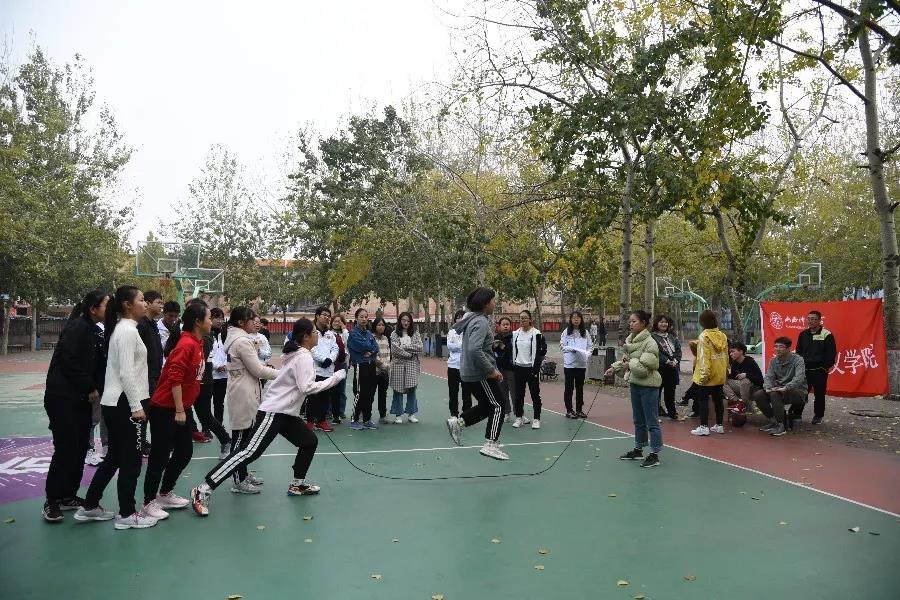 为调动同学们参与体育运动的积极性,有力推进今年会体育活动的开展,丰富同学们的课外生活,今年会体育部于11月9日上午,在篮球场举办了以“绳采飞扬,悦动精彩”为主题的跳绳比赛。