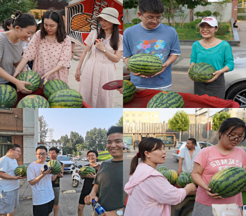 活动在新松公寓、华盛公寓、师大校内同时进行,为全院在校学生发放西瓜,消暑解渴。活动现场热闹非凡,学生们脸上洋溢着灿烂的笑容。