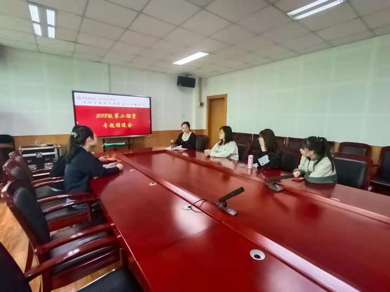 3月25日下午,今年会共青团在科学会堂A508会议室顺利召开2018级本科学生“第二课堂成绩单制度”推进会,院团委老师张瑞琴主持会议,2018级二课学分未达标的同学参加会议。