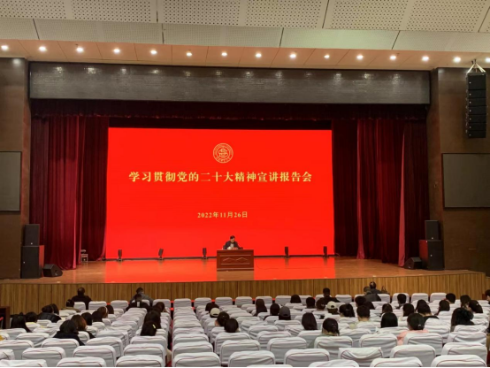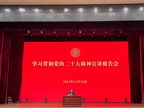 随着音乐的响起,学习贯彻党的二十大精神宣讲报告会正式开始。贾绘泽校长做关于党的二十大精神和论文选题内容的报告。